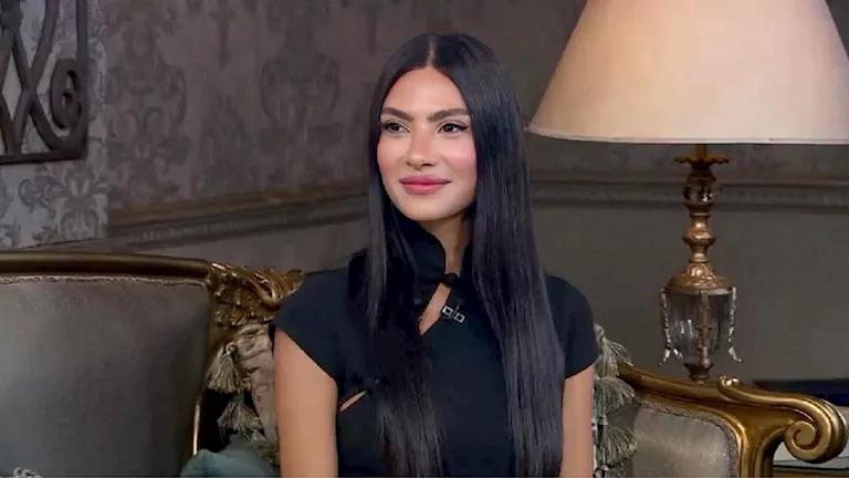 إطلالة هدى المفتي تعكس شخصية قوية وملكية، مستوحاة من الحضارة الإغريقية التي ترمز للجمال والهيبة.