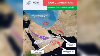 توقع المركز الوطني للأرصاد أن تتأثر الدولة، خلال الفترة من الأربعاء حتى السبت المقبلين، بامتداد منخفض جوي سطحي من البحر…