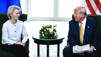 بعد وقت قصير من جلوسه للتفاوض مع المسؤولين الأوروبيين، الأحد الماضي، بشأن اتفاقية تعريفات جمركية محتملة، في أحد منتجعات الغولف…