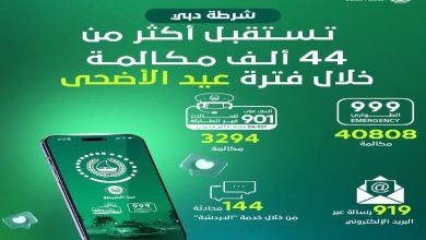 شرطة دبي تستقبل 44 ألف مكالمة خلال عيد الأضحى المبارك