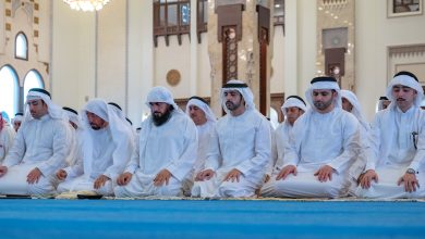 حمدان بن محمد يؤدي صلاة عيد الأضحى بمسجد زعبيل في دبي