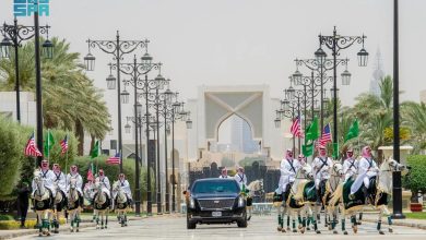 الخيول العربية ترافق موكب ترامب في قصر اليمامة (فيديو)