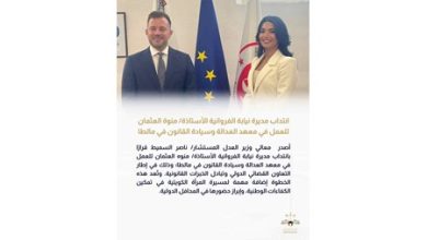 انتداب مديرة نيابة الفراونية منوة العثمان لمعهد العدالة وسيادة القانون في مالطا