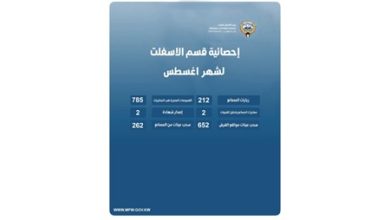 عاطف رمضان كشف تقرير لوزارة الأشغال العامة خلال شهر أغسطس الماضي، حصلت «الأنباء» على نسخة منه، عن نشاط مكثف لقسم…
