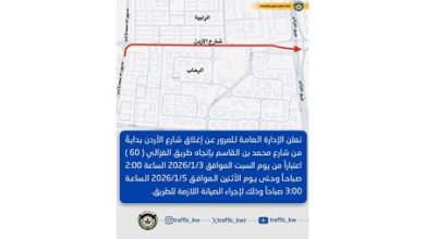 أعلنت الإدارة العامة للمرور عن إغلاق شارع الأردن، وهو أحد الطرق الحيوية في المدينة، لإجراء أعمال صيانة ضرورية تهدف إلى…