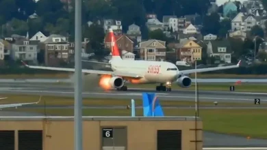لحظة مرعبة.. اشتعال النيران في محرك طائرة أثناء الإقلاع وهذا ما حدث لل