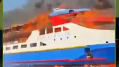 بالفيديو.. حريق هائل في عبارة ركاب بإندونيسيا يجبر العشرات على القفز ف