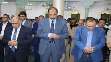 بالصور- محافظ سوهاج يتبادل التهنئة بالعيد مع المواطنين بمسجد الشرطة