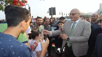 ورود وتهاني.. محافظ القليوبية يحتفل مع المواطنين بالعيد على الكورنيش