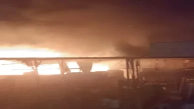 “ألسنة اللهب أضاءت السماء”.. حريق هائل في سوق السيراميك بالمرج- صور