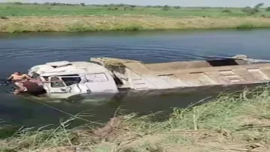 إصابة سائق في انقلاب شاحنة بترعة بلانة بأسوان (صور)
