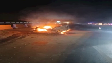 جثة و4 مصابين داخل سيارة متفحمة بأطفيح