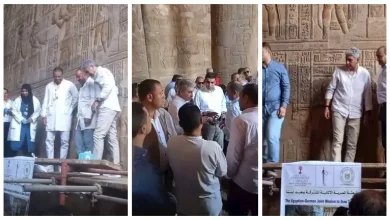 “طلع على السقالة”.. وزير السياحة يتفقد ترميم معبد خنوم بالأقصر (صور)