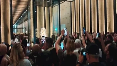 عشرات السائحين يتهافتون على تصوير توت عنخ آمون بالمتحف المصري الكبير-