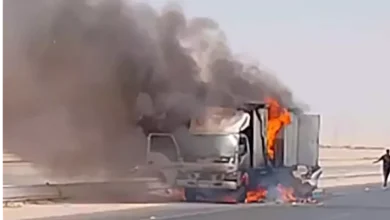 ماس كهربائي يحوّل شحنة بطاطس إلى رماد على طريق السويس (صور)