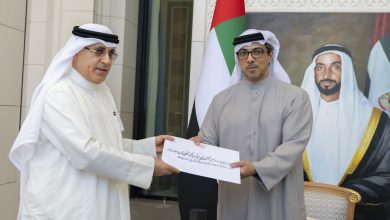 رئيس الدولة يتلقى رسالة خطية من أمير الكويت تسلمها منصور بن زايد