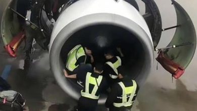 راكب يلقي بعملات معدنية في محرك طائرة لجلب الحظ