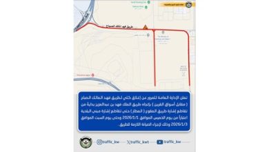 أعلنت الإدارة العامة للمرور عن إغلاق كلي لطريق فهد المالك الصباح (مقابل أسواق القرين) باتجاه طريق الملك فهد بن عبدالعزيز…