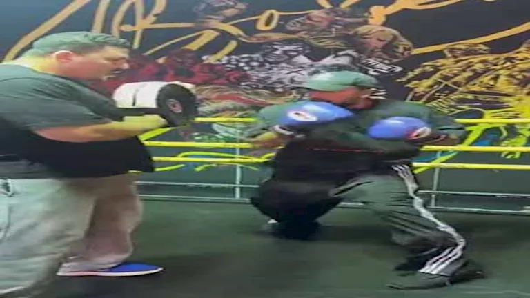 أحمد العوضي يؤدي تمارين شاقة داخل حلبة ملاكمة مع مدربه (صور وفيديو)