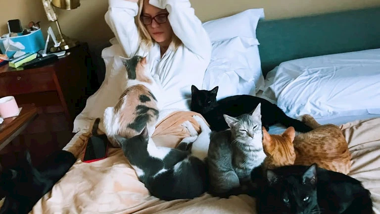 أحدث ظهور لـ شيرين رضا داخل غرفتها بصحبة 7 قطط والجمهور يعلق (صورة)