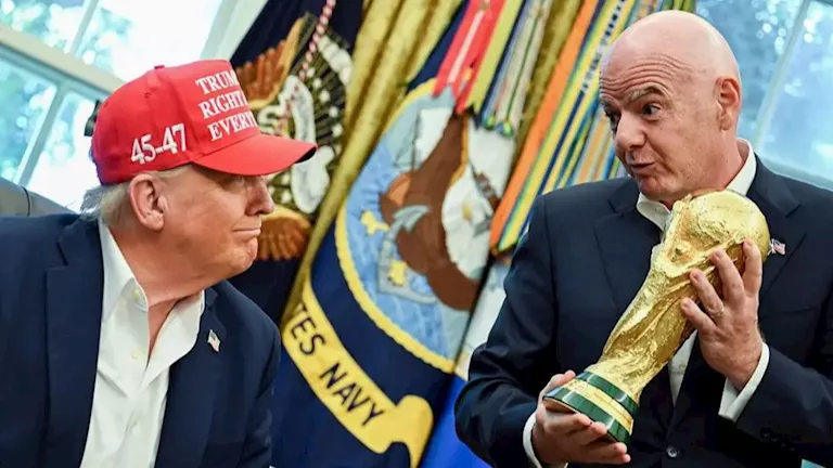 حتى أن إنفانتينو دعا ترامب للمشاركة في حفل تقديم كأس العالم للأندية في يوليو الماضي، وترك نسخة طبق الأصل من كأس البطولة في المكتب البيضاوي الواقع بالبيت الأبيض.