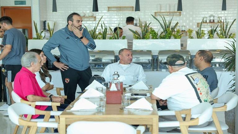 واجتمع محمود الخطيب مع خالد بيبو، مدير الكرة، بمقر إقامة الفريق، وذلك للاطمئنان على أجواء المعسكر وكافة الترتيبات اللازمة للجهاز الفني والإداري والطبي.