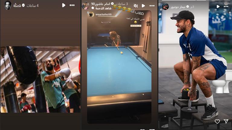 ستوري نجوم كرة القدم.. ملاكمة صلاح.. بلياردو إمام عاشور.. وت