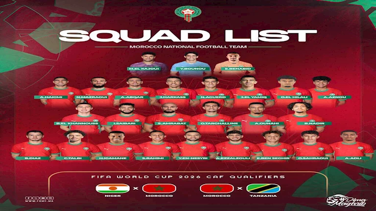 ويواجه منتخب المغرب النيجر يوم الجمعة 21 مارس الحالي، فيما يلتقي تنزانيا، يوم الثلاثاء 25 مارس 2025، وذلك في إطار منافسات الجولتين الخامسة والسادسة من التصفيات.