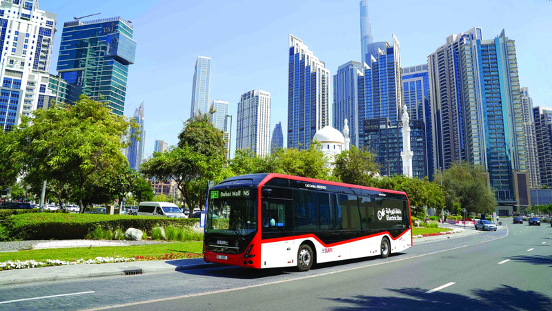 دشّنت هيئة الطرق والمواصلات في دبي تشغيلاً تجريبياً لحافلة كهربائية تعمل على الخط (F13)، المغذي لمحطات المترو، الذي ينطلق من محطة إيواء الحافلات في القوز، ويمر بمناطق مثل برج خليفة، وفندق ذا بلاس داون تاون، ونافورة دبي، ويصل إلى منطقة موقف حافلات مترو دبي مول جهة الجنوب، وزوّدت الحافلة الكهربائية بتقنيات فائقة التطوّر، منها تقنيات ذكية مثل نظام الكاميرات والشاشات عالية الدقة بدلاً من المرايا التقليدية، وشاشة عرض شفافة تُظهر المعلومات الأساسية على الزجاج الأمامي لتسهيل القيادة، وغيرها من المزايا الذكية والحديثة.