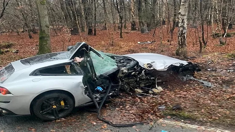 ووقع الحادث في غابة إيبنج، حيث ظل عالقا في العربة لأكثر من 45 دقيقة، وسط محاولات من رجال الإطفاء لإنقاذه.