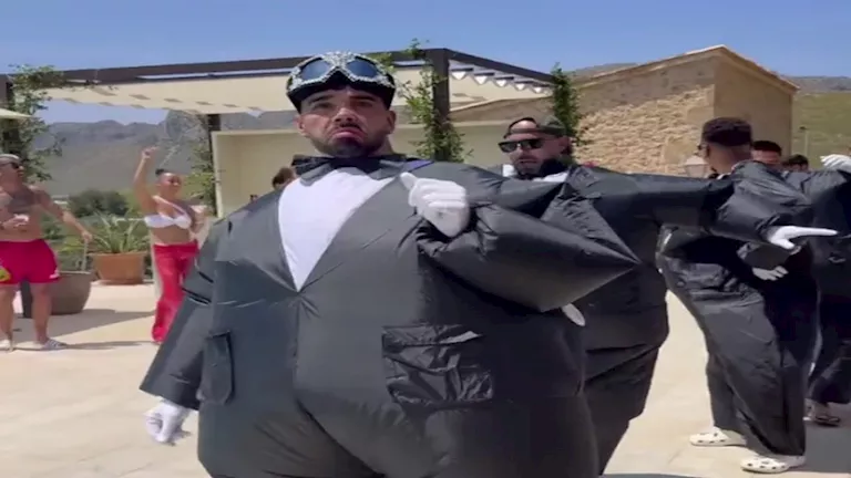 حفل الزفاف الذي أُقيم مؤخرًا في إسبانيا، حضره الأهل والأصدقاء المقربون، لكنه لم يكن عاديًا على الإطلاق، إذ قرر رايا، البالغ من العمر 29 عامًا، أن يضفي لمسته الخاصة، فدخل قاعة الحفل برفقة أصدقائه وهم يرتدون “بدلات قابلة للنفخ”، وسط أجواء احتفالية صاخبة، وتفاعل واسع من الحضور.