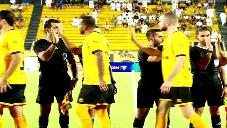 وحرص كهربا على الاجتماع باللاعبين بمنتصف الملعب قبل انطلاق اللقاء ليحفزهم ويمنحهم بعض التعليمات قبل خوض اللقاء المقام ضمن منافسات الجولة الأولى من الدوري الكويتي.