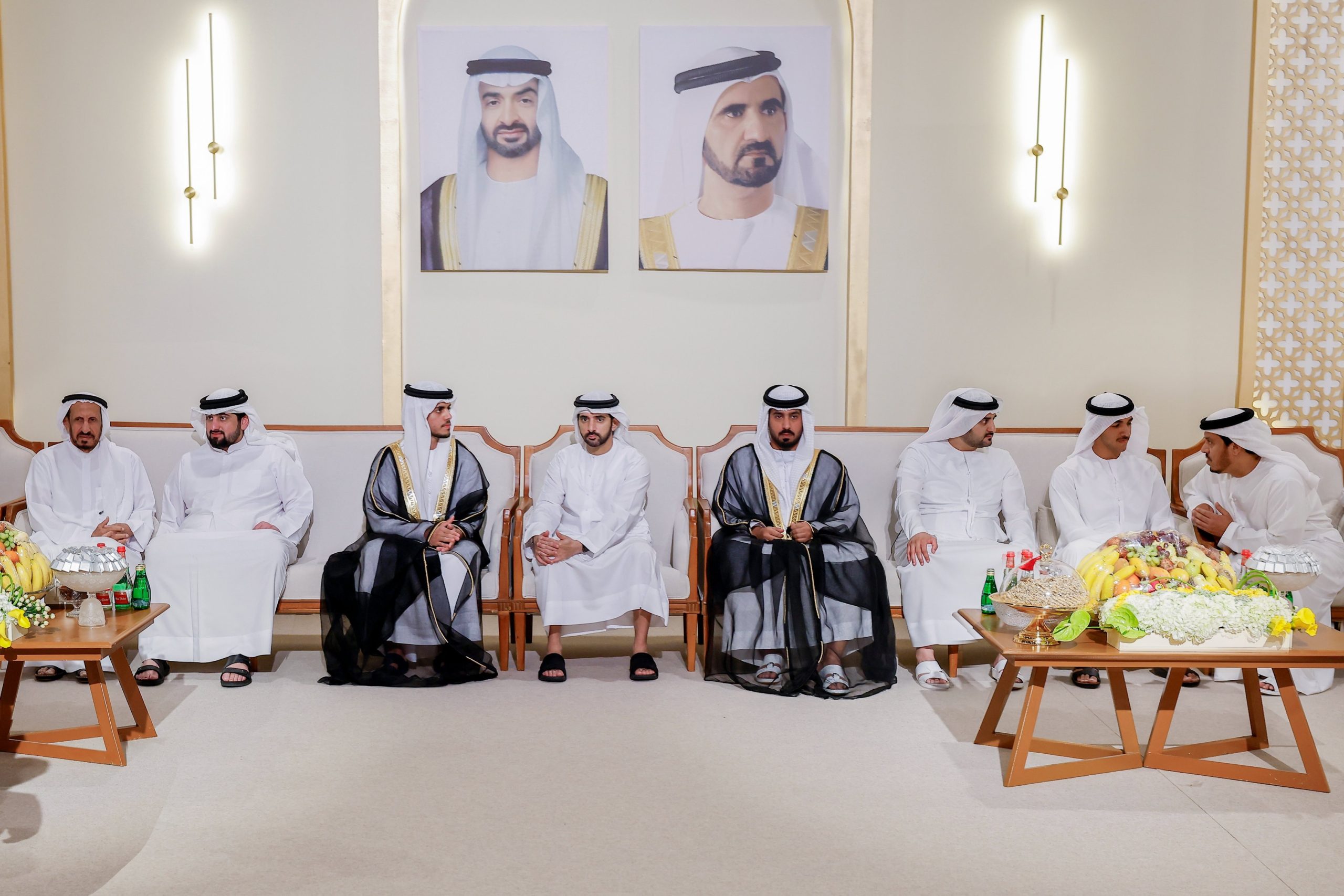 حضر سموّ الشيخ حمدان بن محمد بن راشد آل مكتوم، ولي عهد دبي، نائب رئيس مجلس الوزراء وزير الدفاع، رئيس المجلس التنفيذي لإمارة دبي، يرافقه سموّ الشيخ مكتوم بن محمد بن راشد آل مكتوم، النائب الأول لحاكم دبي، نائب رئيس مجلس الوزراء وزير المالية، وسموّ الشيخ أحمد بن محمد بن راشد آل مكتوم، النائب الثاني لحاكم دبي، وسموّ الشيخ محمد بن راشد بن محمد بن راشد آل مكتوم، اليوم الخميس حفل الاستقبال الذي أقامه سلطان مطر مرخان الكتبي، ومحمد سلطان مطر مرخان الكتبي في دبي بمناسبة زفاف نجليهما مطر سلطان مطر مرخان الكتبي على كريمة عبدالله أحمد محمد المزروعي، وجابر محمد سلطان مطر مرخان الكتبي على كريمة محمد عبدالله أحمد المزروعي.